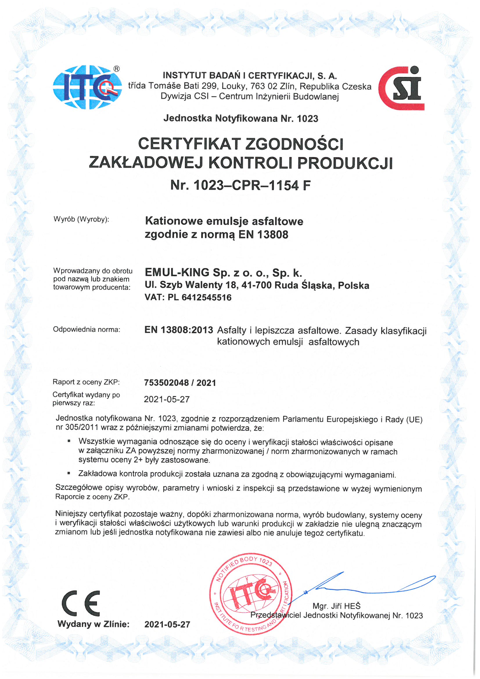 EMULKING prowadzi nowoczesną wytwórnię kationowych emulsji asfaltowych uruchomioną w 2021 roku. Zakład został zaprojektowany według autorskich specyfikacji inżynieryjnych i obejmuje kompleksowe systemy kontroli jakości.